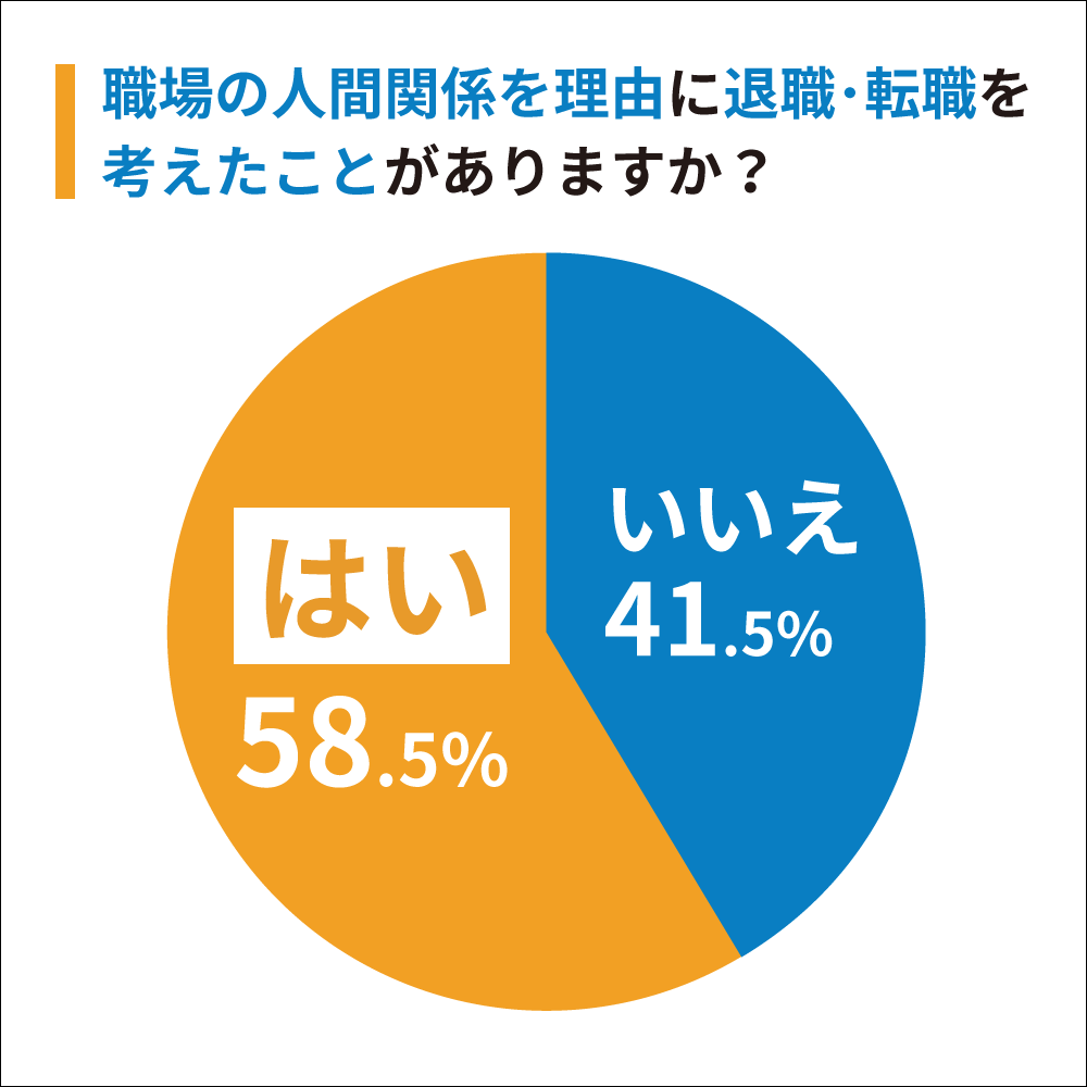 また、人間関係を理由に退職・転職を検討した人は58.8%も存在することがわかっています。